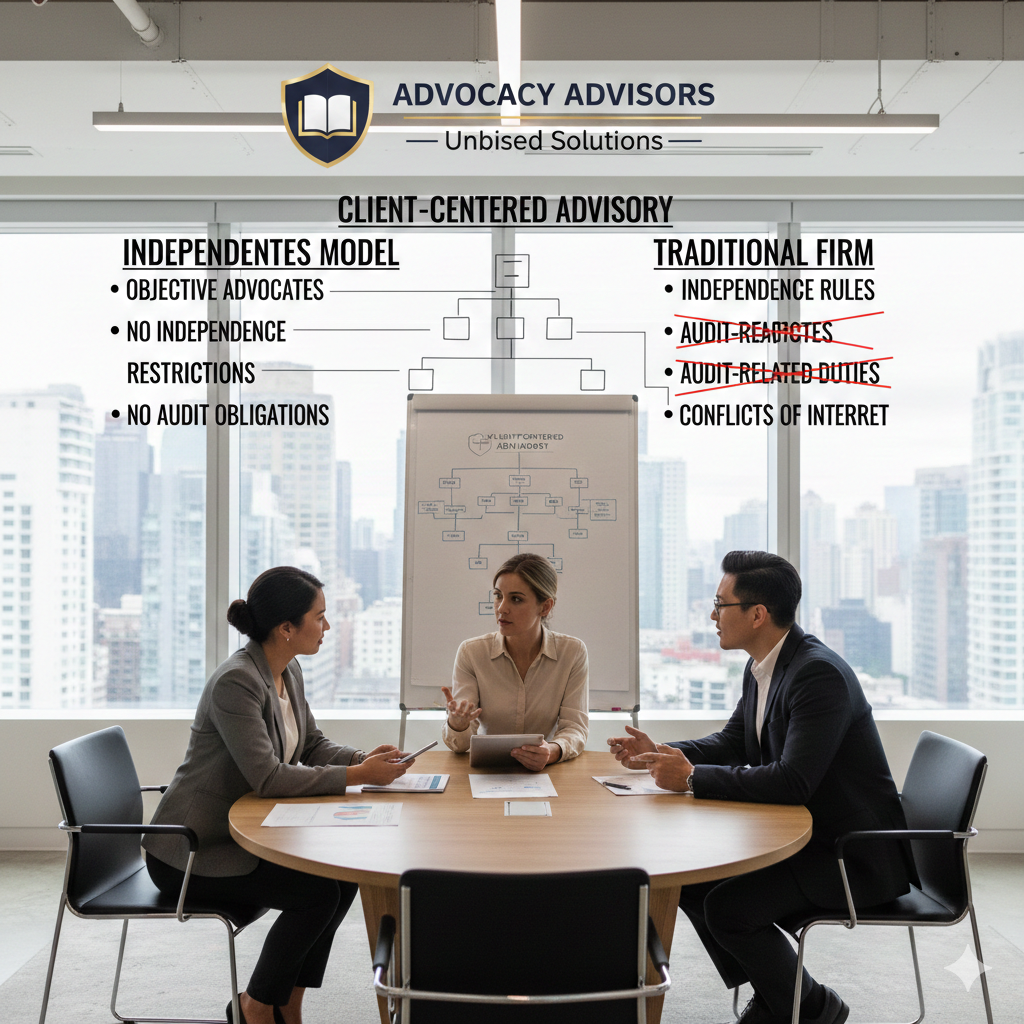 We are objective advocates for our clients, free from the independence restrictions and audit related obligations that apply to public accounting firms.